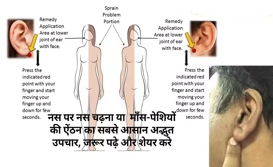 जिस तरफ नस चढ़ी हो, उसके विपरीत तरफ कान के नीचे वाले जोड़ पर 10 सेकंड तक हल्का दबाव दें।